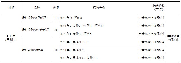 注:销售价格等级差40元/吨;本交易安排为预公告,交易日的实际销售数量以湖北粮网官网发布的交易清单为准。